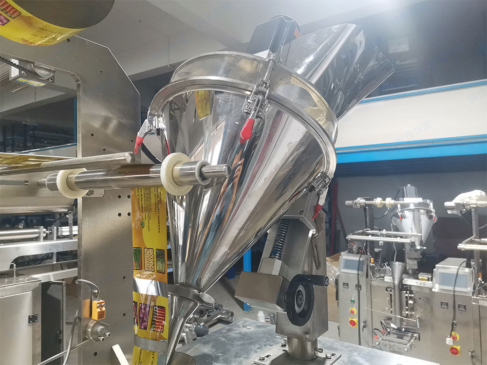 ②、粉劑自動包裝機(jī)采用伺服電機(jī)驅(qū)動,特殊定制螺桿高精度計(jì)量稱重,夾拉式橫封拉膜可實(shí)現(xiàn)長條背封圓角袋的精美包裝。